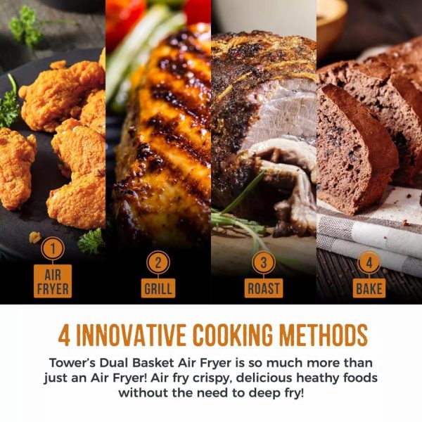 Tower Housewares Dual Basket Air Fryers | Air Fryers Vortx Vizion L Dual Basket Digital Air Fryer Black quantity