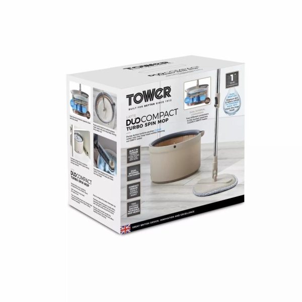 Tower Housewares Floor Cleaners | Floorcare Duo Compact Spin Mop Latte