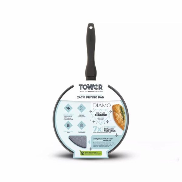 Tower Housewares Frying Pans | Homeware Diamo cm Frying Pan With Black Diamond Coating Black