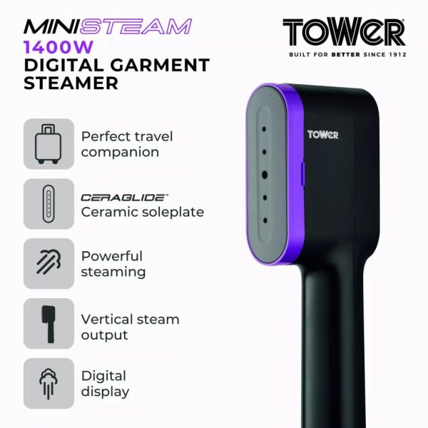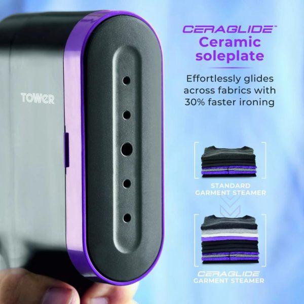 Tower Housewares Garment Steamers | Homeware Digital Handheld Garment Steamer Lilac