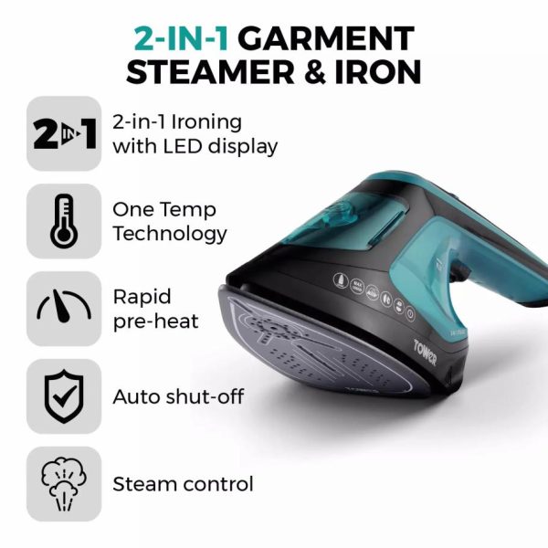 Tower Housewares Garment Steamers | Homeware In Hand Garment Steamer & Iron Teal