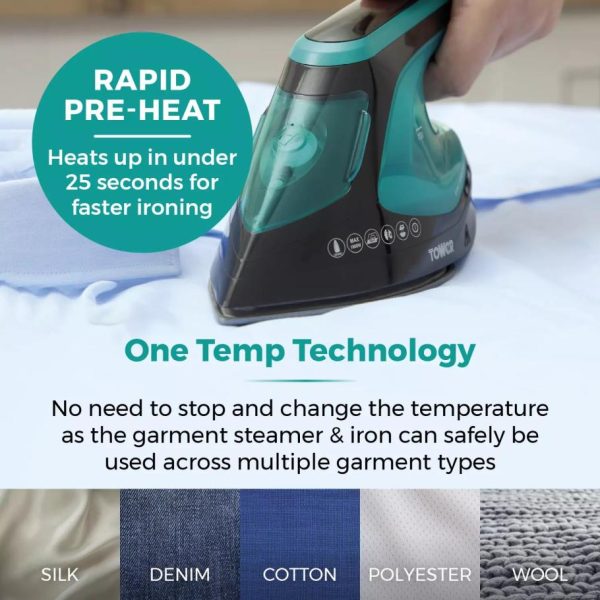 Tower Housewares Garment Steamers | Homeware In Hand Garment Steamer & Iron Teal quantity