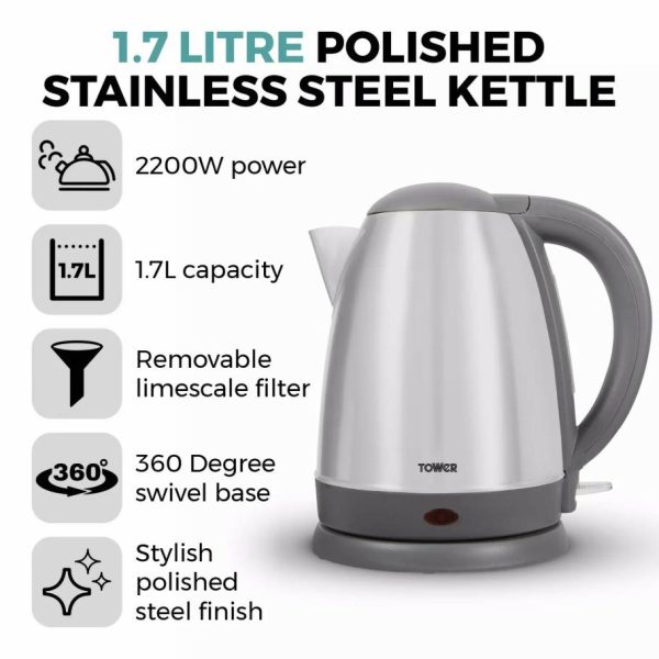 Tower Housewares Kettles | Kitchen Presto . Litre Polished Stainless Steel Kettle Stainless Steel
