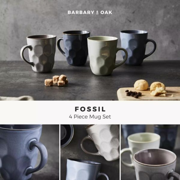 Tower Housewares Mugs | Homeware Fossil Mug Set Of Reactive Glaze Assorted