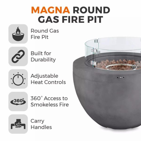 Tower Housewares Outdoor Heating | Homeware Magna Round Gas Fire Pit Grey