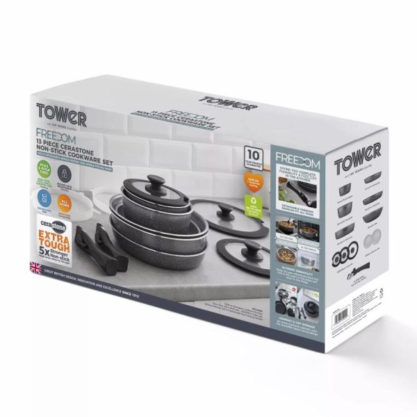 Tower Housewares Pots & Pans | Homeware Freedom Piece Cookware Set With Cerastone Coating Graphite