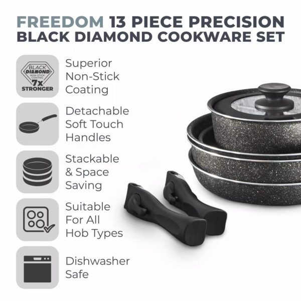 Tower Housewares Pots & Pans | Homeware Freedom Piece Precision Cookware Set With Black Diamond Coating Black quantity