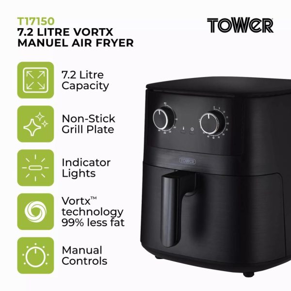 Tower Housewares Single Basket Air Fryers | Air Fryers/Kitchen . Litre Vortx Manual Air Fryer Black