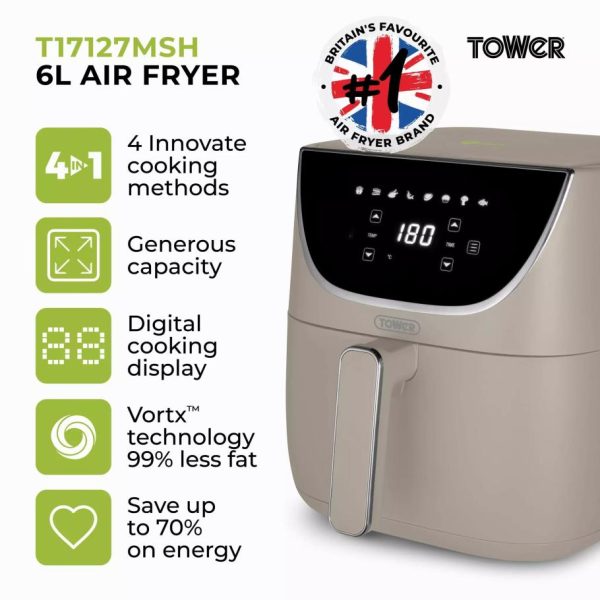 Tower Housewares Single Basket Air Fryers | Air Fryers/Kitchen Vortx Litre Colour Air Fryer Latte
