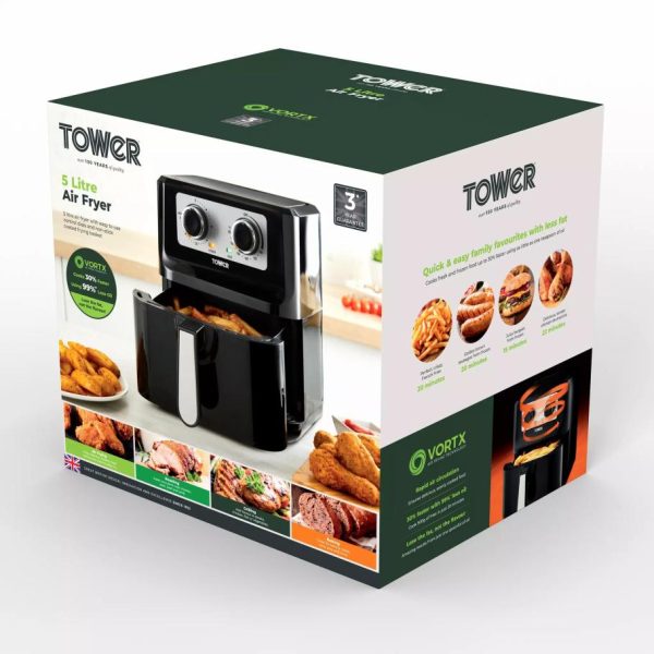 Tower Housewares Single Basket Air Fryers | Air Fryers/Kitchen Vortx Litre Manual Air Fryer Black
