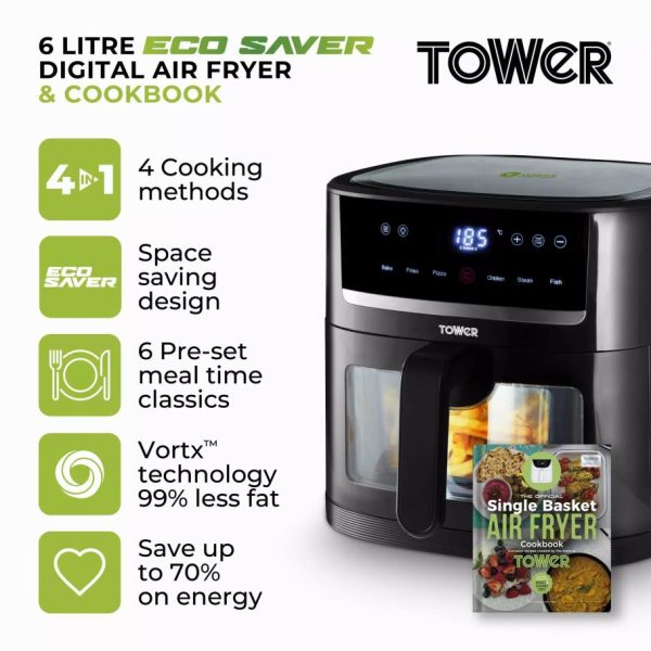 Tower Housewares Single Basket Air Fryers | Air Fryers/Kitchen Vortx Litre Single Basket Air Fryer & Recipe Book None