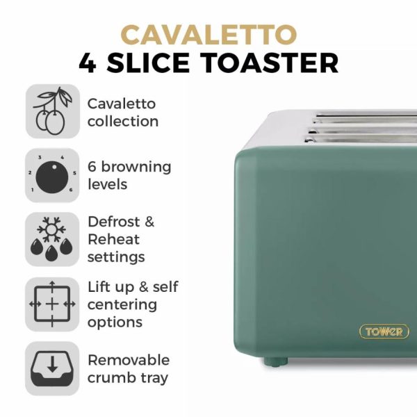 Tower Housewares Toasters | Kitchen Cavaletto Slice Stainless Steel Toaster Jade