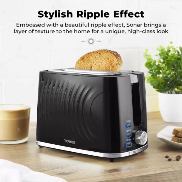 Tower Housewares Toasters | Kitchen Sonar Slice Textured Toaster Black