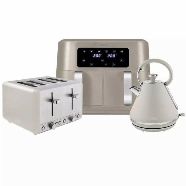 Tower Housewares Triple Sets | Kitchen Cavaletto Slice Toaster, Kettle & Dual Basket Air Fryer Latte quantity