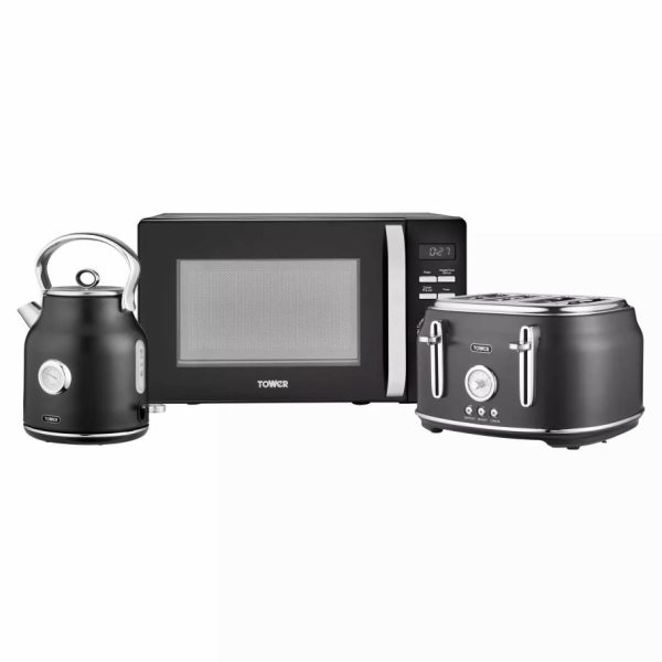 Tower Housewares Triple Sets | Kitchen Renaissance Kettle, Slice Toaster & Microwave Black