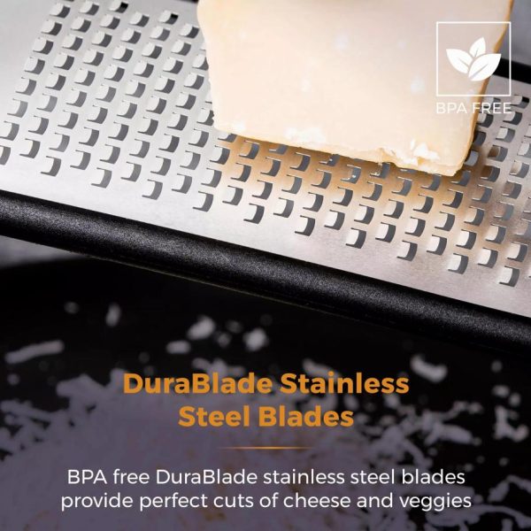 Stainless steel blades provide perfect cuts and is easy to clean