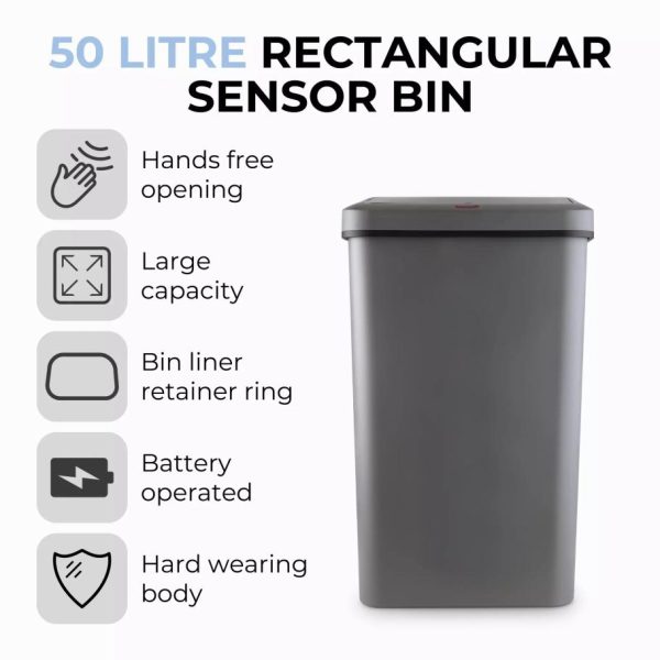 Tower Housewares Waste Bins | Homeware Litre Rectangular Sensor Bin Grey