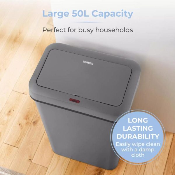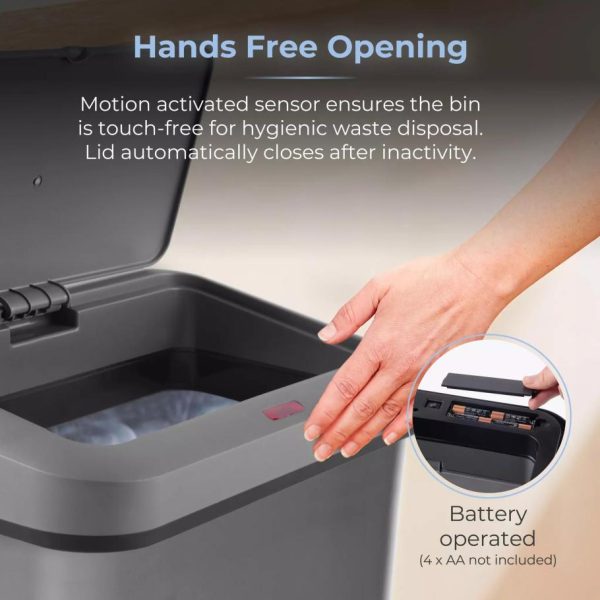 Tower Housewares Waste Bins | Homeware Litre Rectangular Sensor Bin Grey quantity
