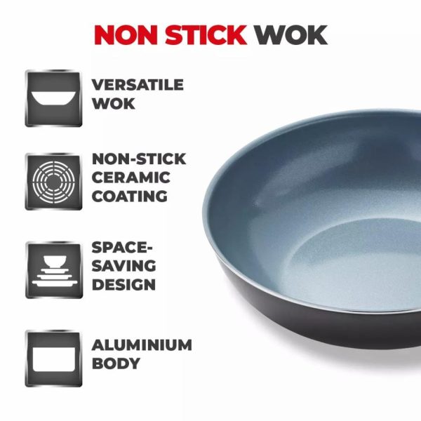 Tower Housewares Woks | Homeware cm Non-Stick Wok Graphite Graphite