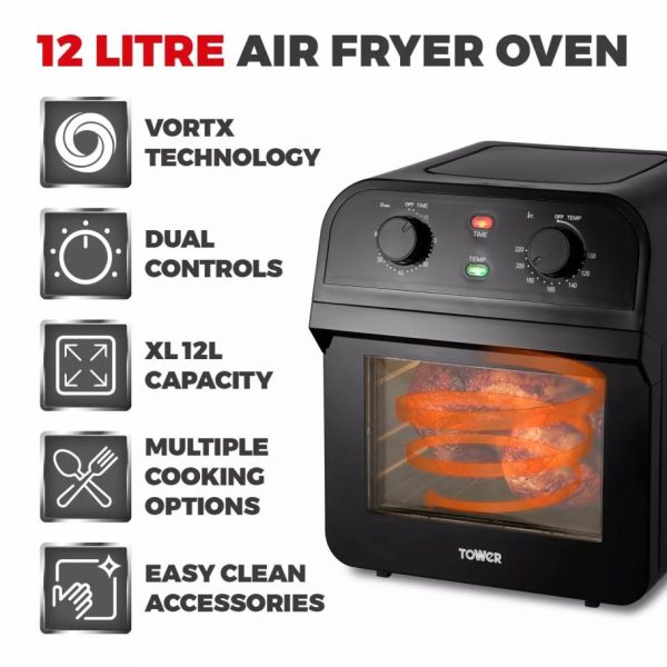 Tower Housewares Xpress Air Fryers | Air Fryers/Kitchen Litre Manual Air Fryer Oven Black