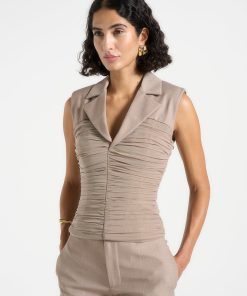 Manière De Voir Women’s Thea – Mesh Ruched Waistcoat – Mushroom