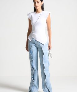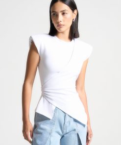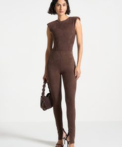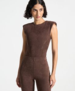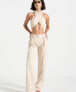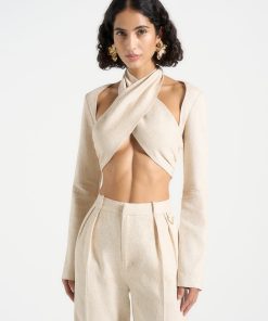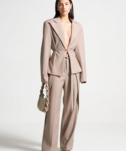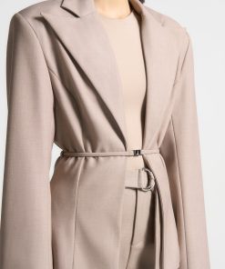 Manière De Voir Women’s Wide Shoulder Tailored Blazer With Twin Belt – Taupe